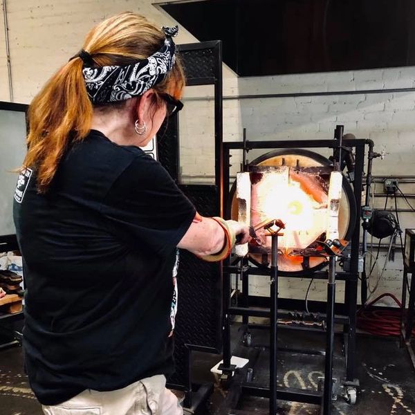 Her latest endeavor is stepping into the hot-shop and glassblowing.